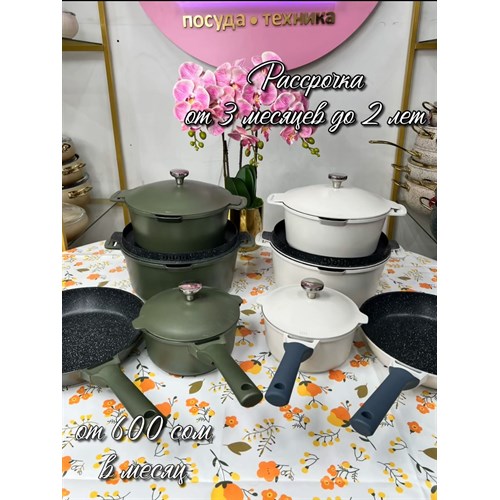 В этот стильный набор входит два казана и две сковороды: одна классическая, а другая чуть глубже с крышкой. Удобно для жарки и тушения! 👌
