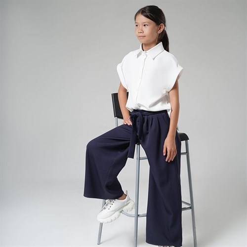 Брюки палаццо и рубашка с разрезом.