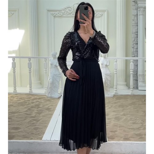 🔥 Не упустите шанс приобрести красивое шифоновое платье со скидкой! Модель комбинирована с изысканными пайетками для особого сияния на любом мероприятии.