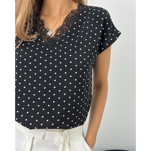 Топ в мелкий горошек арт 15105, размеры 42-48, ткань дубайский шелк