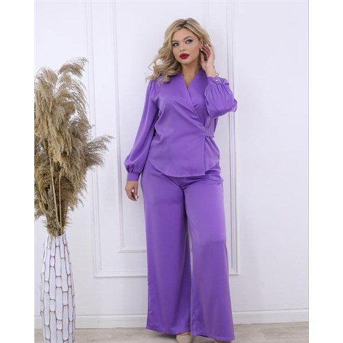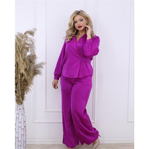 Невероятно стильный костюм двойка из японского шелка. Верх на запахе, V образный вырез удлиняет шею, рукава с манжетами, брюки палаццо. В 6 роскошных расцветках.
