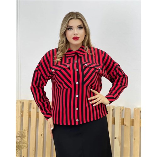 Новинка! Стильная двойка Арт 19314 рубашка в полоску и прямая юбка в длине миди