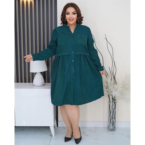 Стильное платье из микровельвета со стойкой воротником и с рабочими пуговицами.
