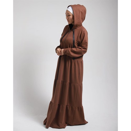 Ярусные платья с капюшоном, на груди рабочий замок.