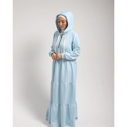 Ярусные платья с капюшоном, на груди рабочий замок.