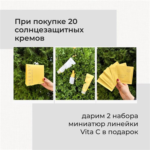 Всё, что Вам необходимо сделать - это купить от 20 солнцезащитных кремов бренда NEEDLY. В подарок Вы получите 2 набора миниатюр из питательной линейки Vita C