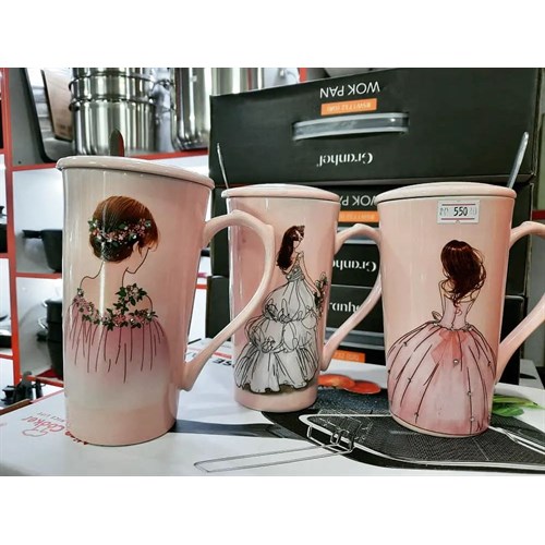 Симпатичные кружки в нежных цветах с цепочкой и крышкой.