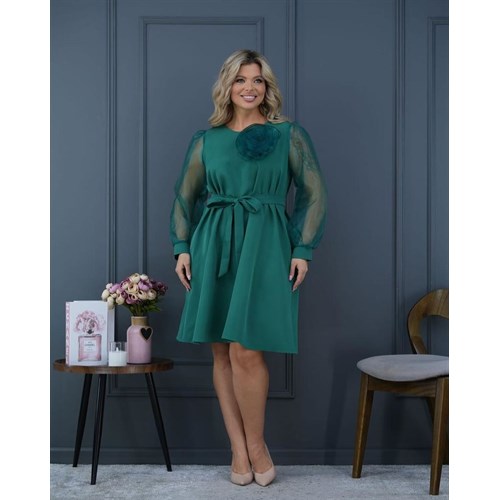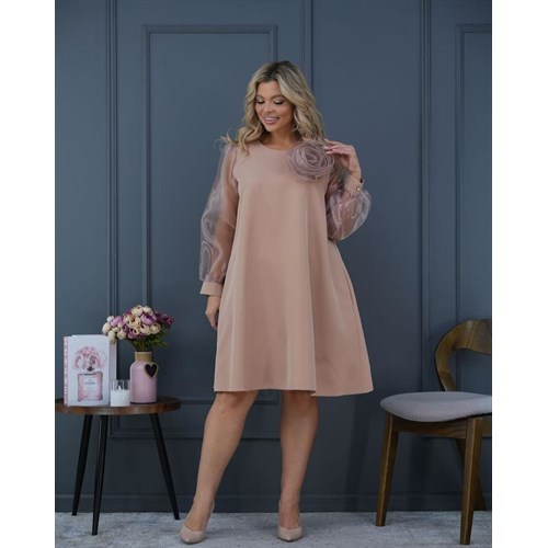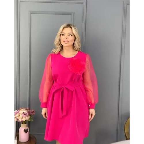 Привлекательное платье, изготовленное из ткани Барби с рукавами из Органзы, идеально подчеркнет вашу женственность и изящество. Оно придаст вам неповторимый облик на любом мероприятии. Сьемный цветок брошь на груди станет ярким акцентом вашего наряда, а рукава из органзы добавляют изысканности и воздушности.